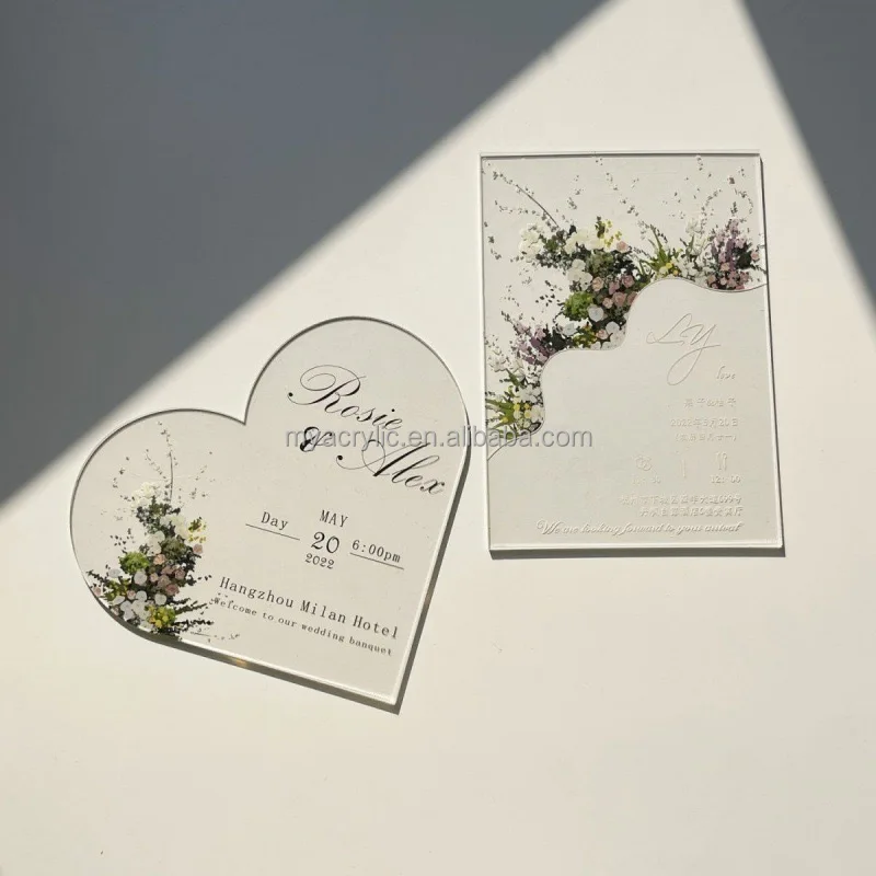 Индивидуальная прозрачная акриловая пригласительная открытка с УФ-печатью