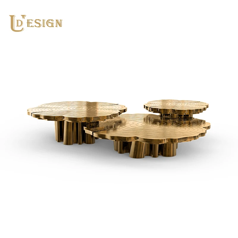 Роскошный журнальный столик из нержавеющей стали с золотистыми корнями дерева травленый верхний центральный стол для виллы домашний низкий