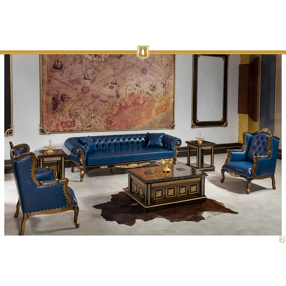 Турецкий ближневосточный роскошный классический традиционный антикварный Королевский ручной резной кожаный диван набор мебели для гостиной 444 781,88-770 955,25 ₽