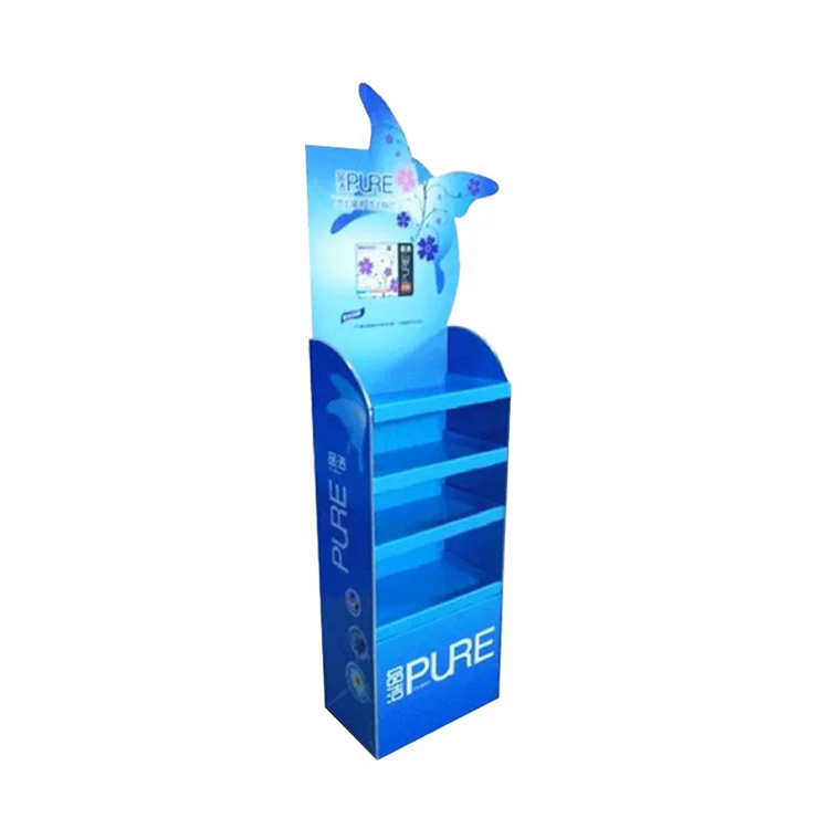 Индивидуальные 4-слойные небольшие картонные напольные полки продукт грузоотправитель напольный дисплей стенд дисплеи