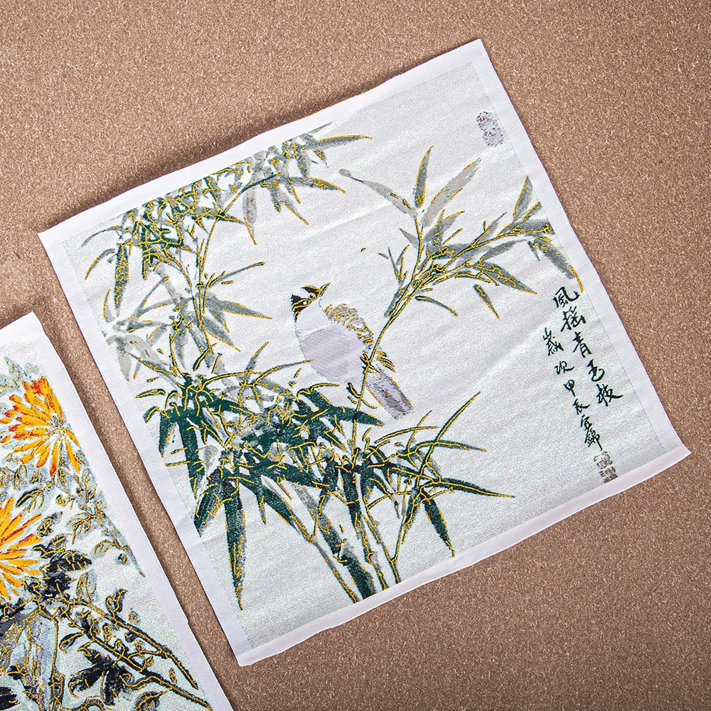 Элегантная ручная тканая этикетка художественная вышивка Бамбуковая птица Золотая Серебряная нить настенное искусство улучшенное домашний декор с роскошным мастерством
