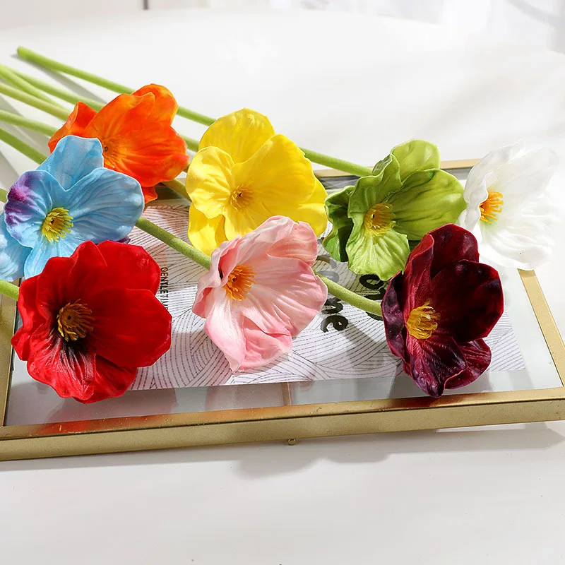 Низкая цена 60 см шелк 4 головки искусственные цветы мака настоящий вид искусственный цветок для домашнего декора 0,88 $