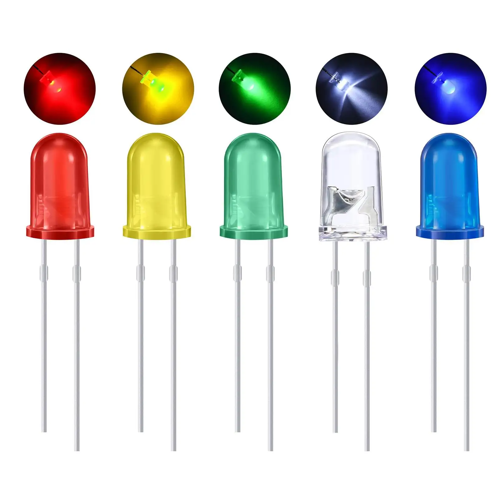 We have 3mm, 5mm, 8mm and 10mm all size; have single color, bicolor and tricolor full color; have round top, flat top, straw hat, rectangle, cylindrical all shape leds. Also can provide OEM and ODM PCB service.