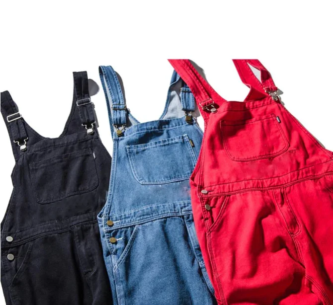Оптом оптом джинсы Синий Черный Красный подтяжки с высокой талией повседневные брюки джинсовые комбинезоны для мужчин