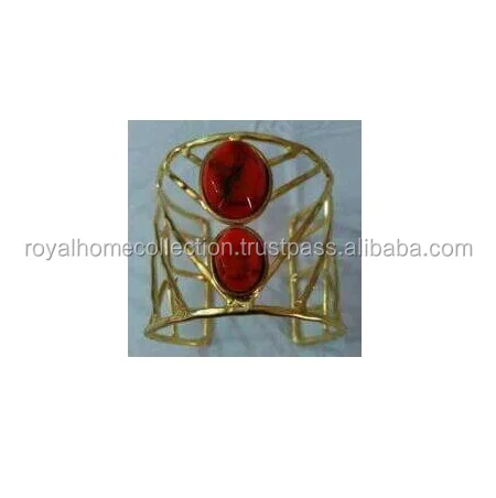 Латунные браслеты с красными драгоценными камнями
