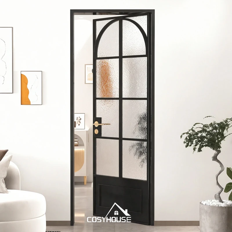 Двери кухонные из матового стекла во французском стиле черные алюминиевые железные двери для кухонных дверей дома 118,80-175,80 $