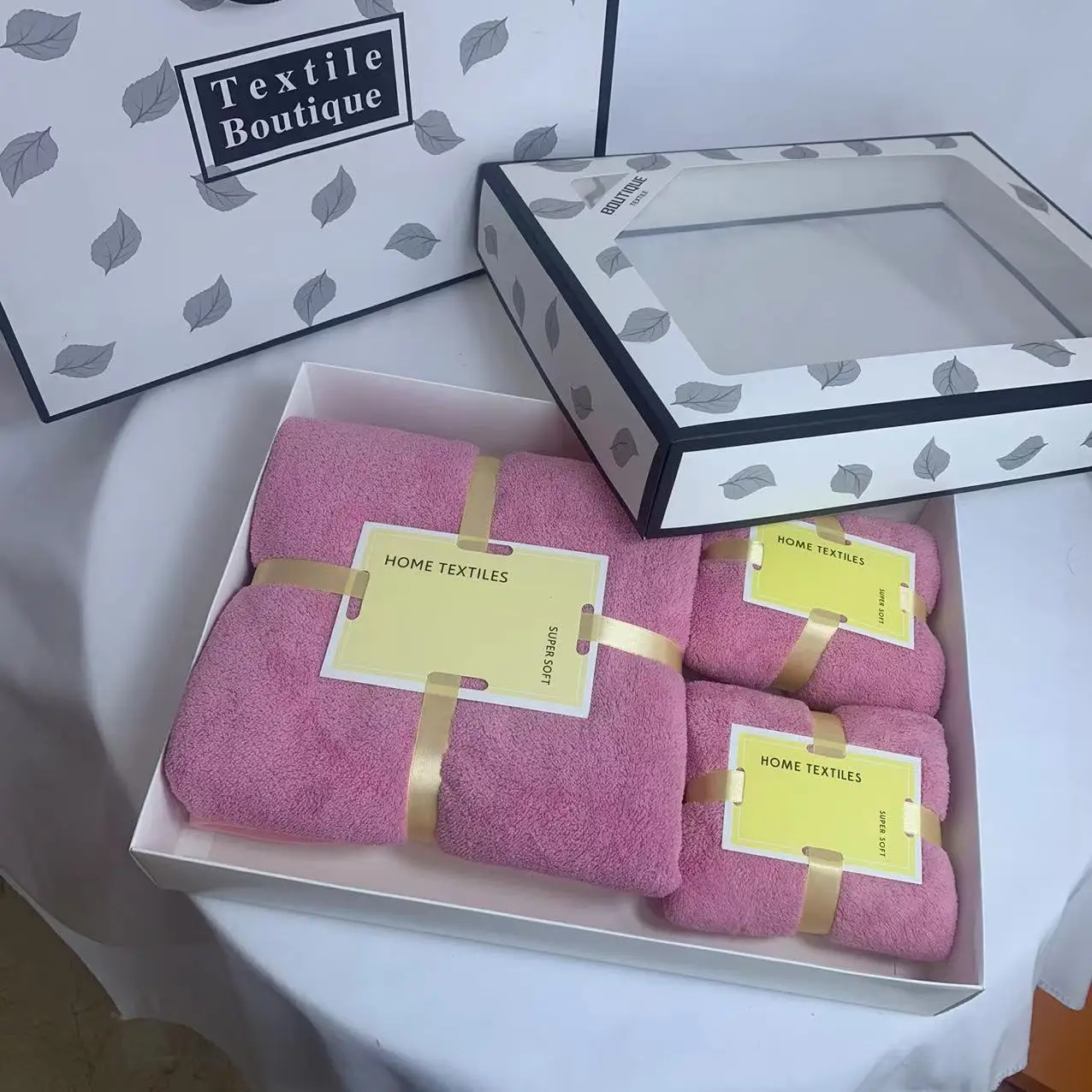 Оптовая продажа 2 в 1 подарочные пакеты с логотипом под заказ коралловый флис большой Подарочный набор Полотенец роскошный белый розовый мягкий полотенец из микрофибры для ванной