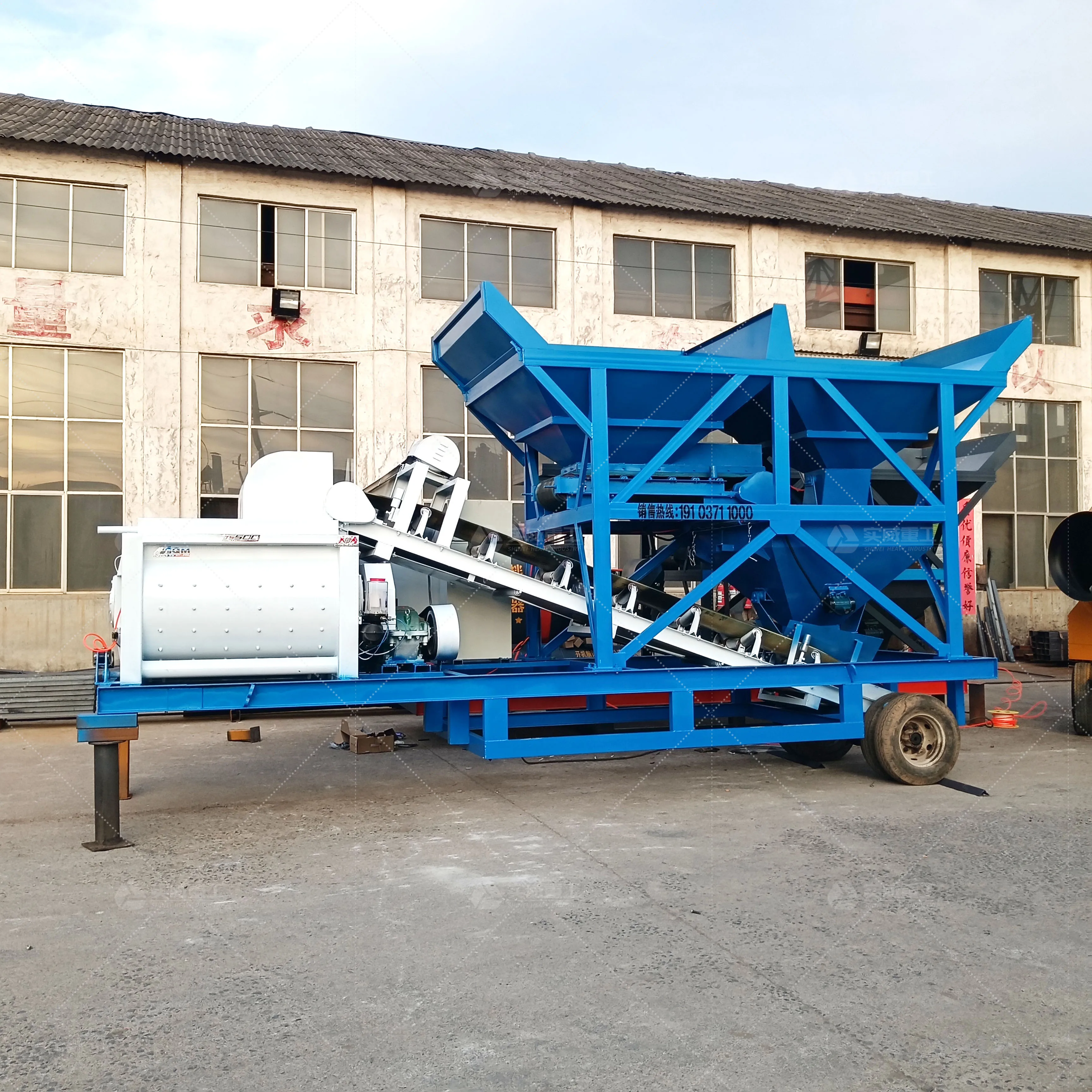Китай Высококачественный портативный 60 м3/ч небольшой готовый мобильный бетоносмеситель для продажи