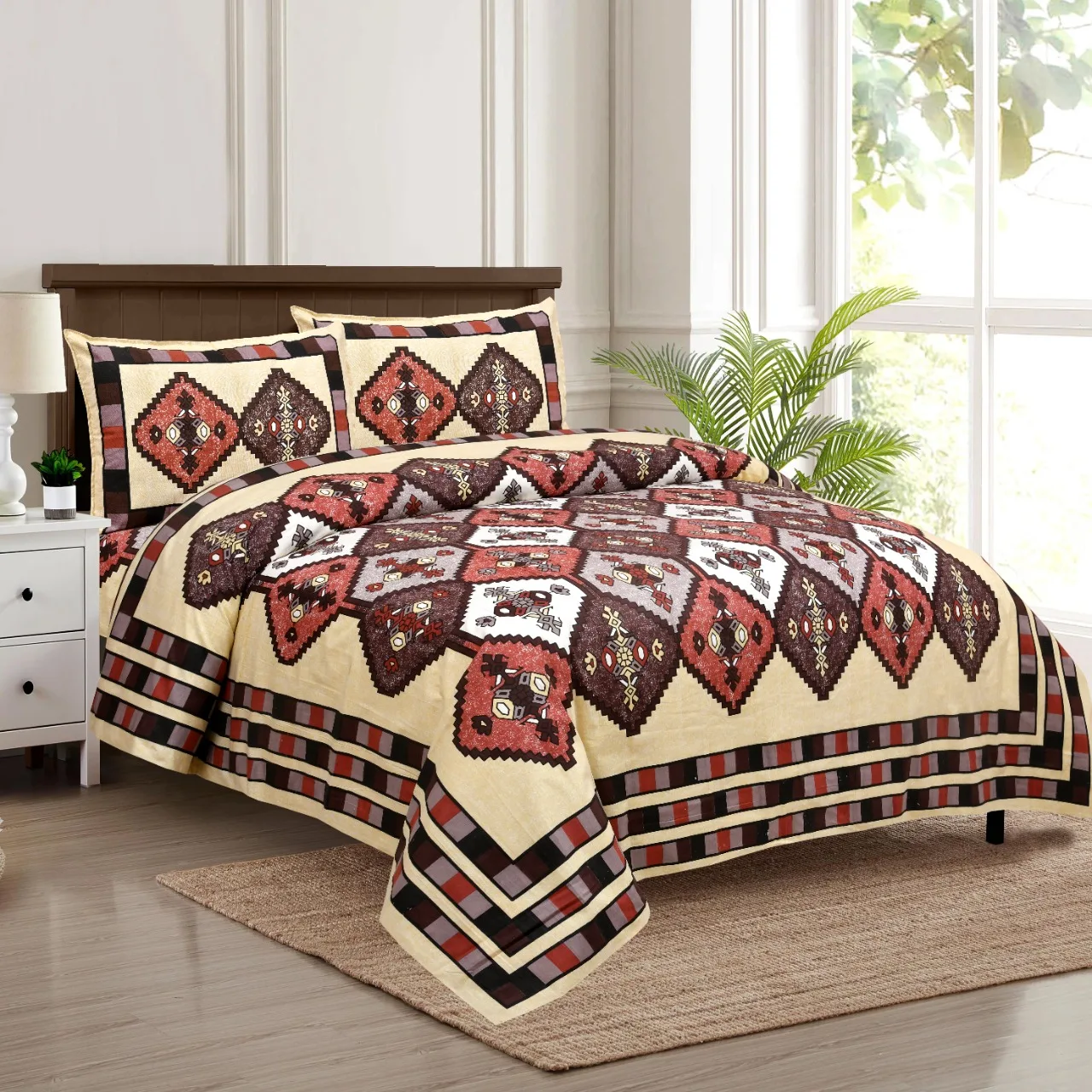 Индийский набор простыней ручной работы из 100% хлопка раджастхани двуспальная кровать размера «King-Size/Queen-Size» с 2 наволочками принтом