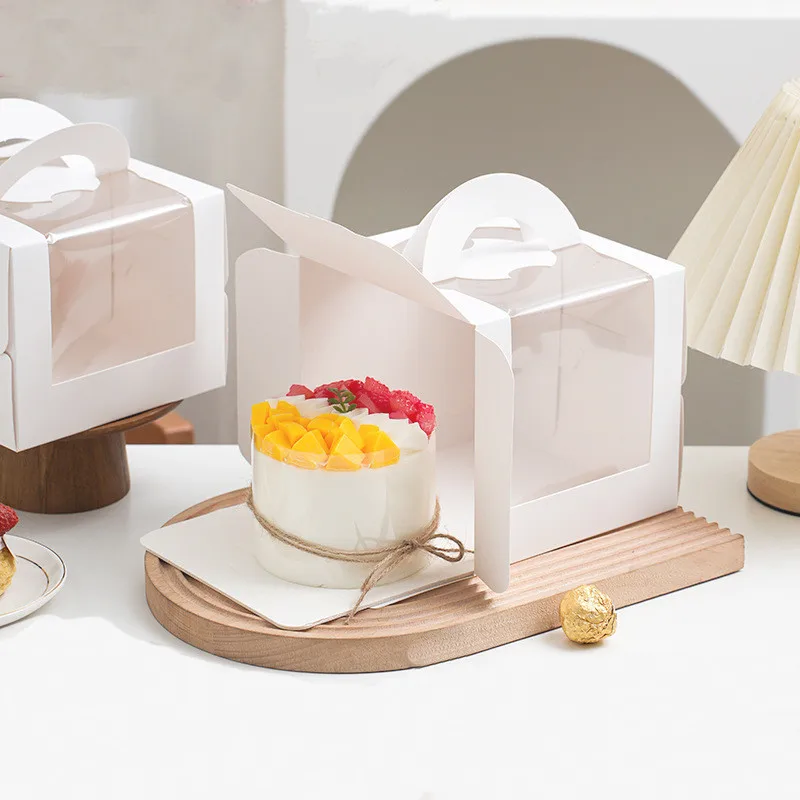 Пищевая белая картонная акриловая коробка для торта с прозрачным окном мини-коробка ковриком