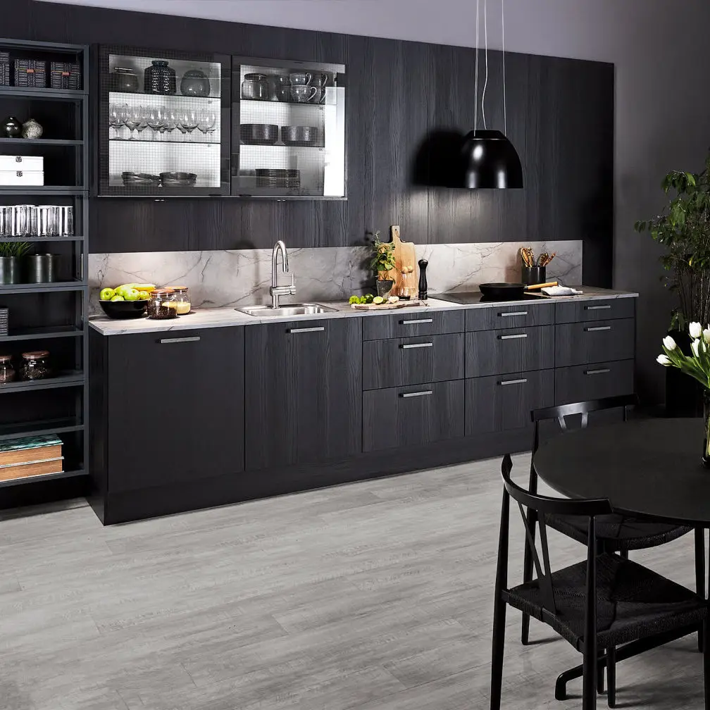 Кухонный шкаф из нержавеющей стали с деревянной текстурой дверь кухонного шкафа поставщик Гуанчжоу