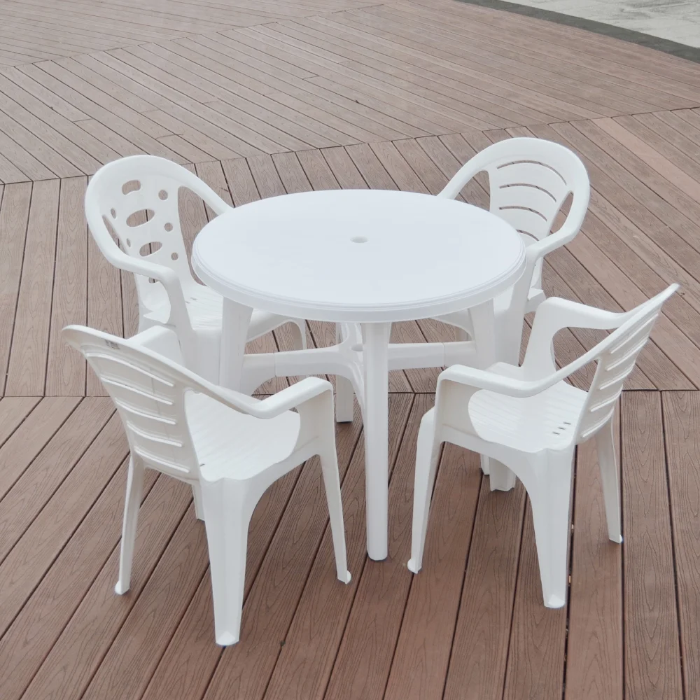 DHF современный дизайн обеденный набор белый круглый пластиковый круглый обеденный набор регулируемый по высоте стол
