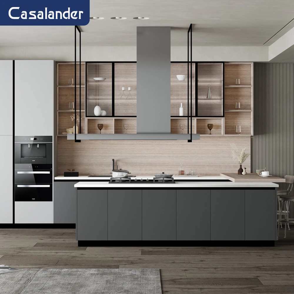 Роскошные пользовательские островные стулья современные кухонные с выдвижными ящиками и раковиной кухонный шкаф U-образной формы из нержавеющей стали 160-180 $