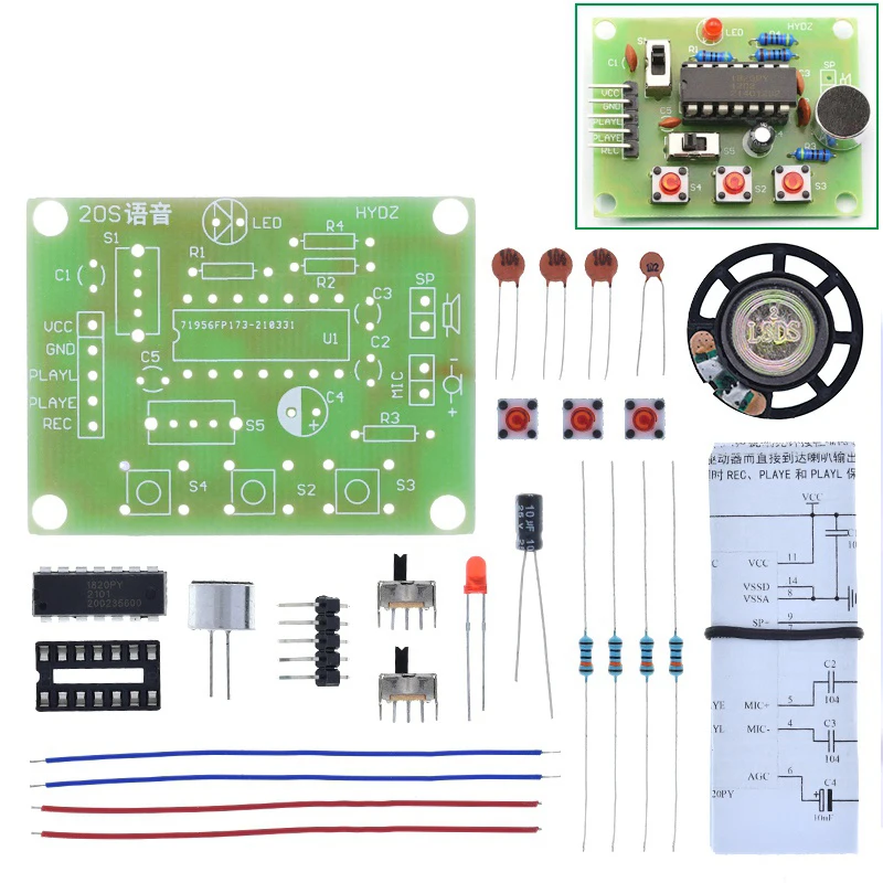 Набор для записи голоса ISD1820, 20 секунд, для студентов, электронное производство, обучение «сделай сам», учебный ЭКСПЕРИМЕНТАЛЬНЫЙ НАБОР для студентов