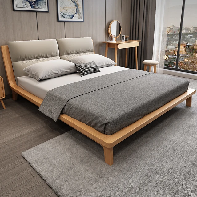 Полностью твердая древесина, мягкая упаковка, Современная односпальная кровать из скандинавского бука, двухспальная кровать, латексный матрас и матрас с кокосовой пальмой, кровать 185 608,80 ₽ - 213 972,29 ₽