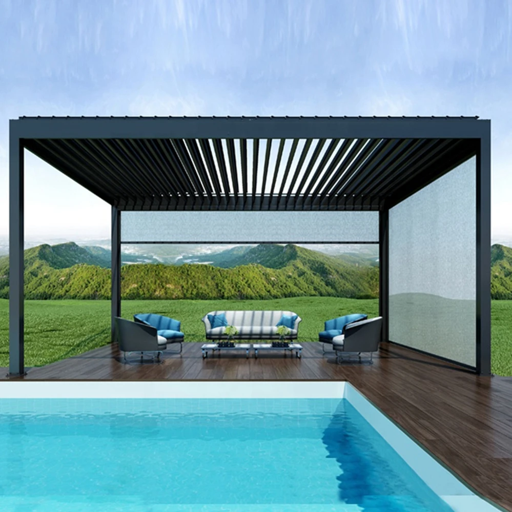 Водонепроницаемые жалюзи системы крыши наборы открытый беседка сад алюминиевые биоклиматические беседки