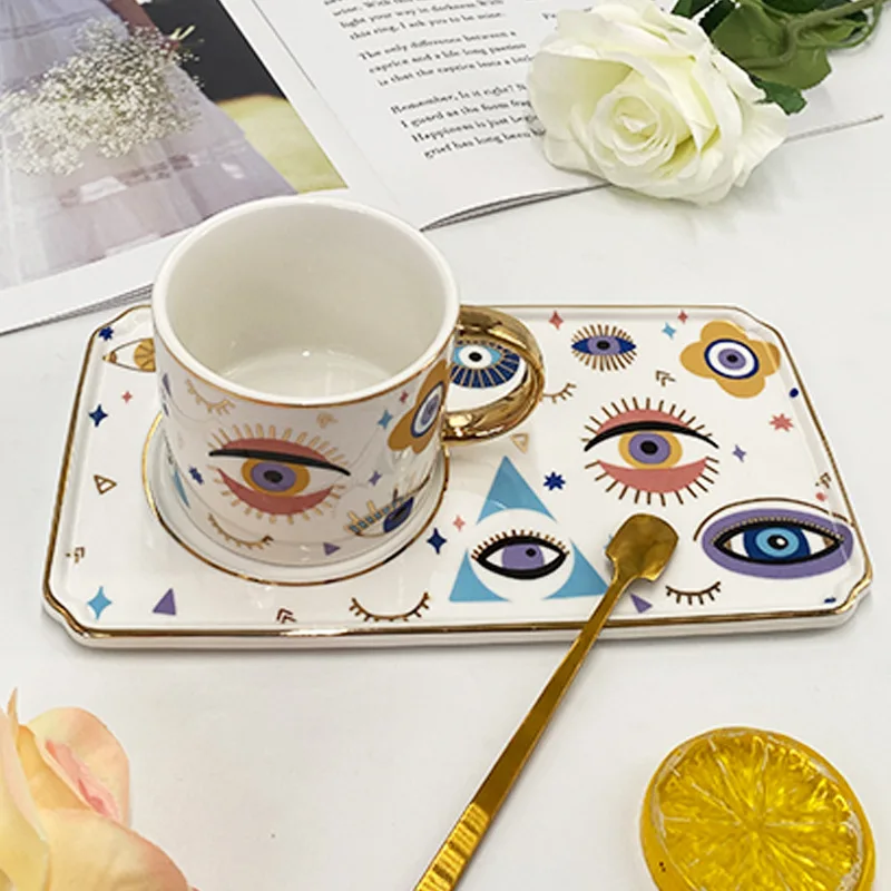 Керамическая кофейная чашка легкая Роскошная для Злого Глаза набор блюдца послеобеденного чая изысканный подарочный кофе 427,62 ₽ - 461,79 ₽