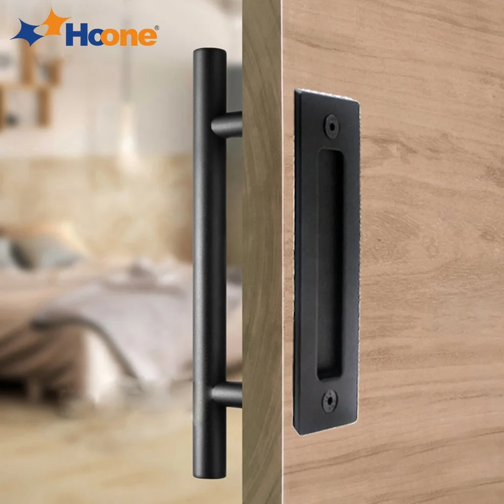 Комплект оборудования для раздвижных дверей черного цвета, Т-образная ручка, встраиваемая дверная ручка, скрытая Встраиваемая Скрытая ручка