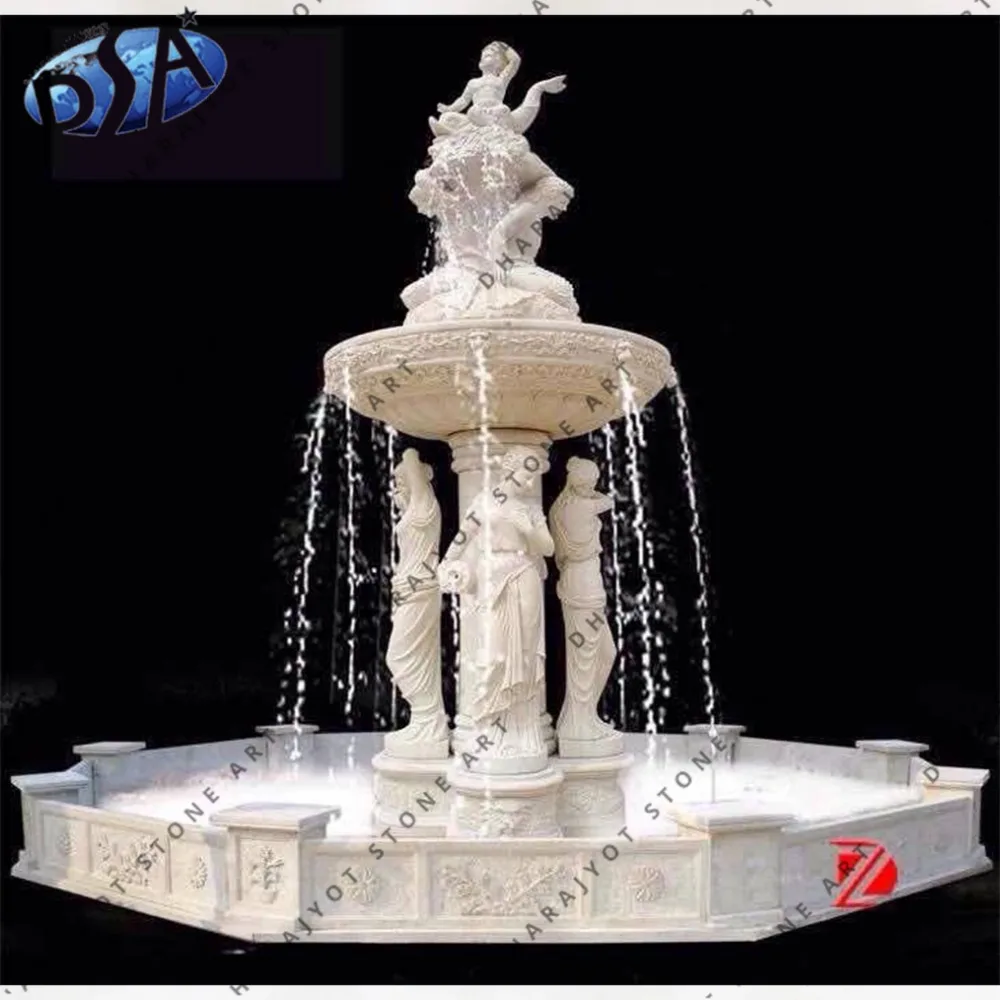 Сад Белый Мраморный фонтан воды с леди статуя