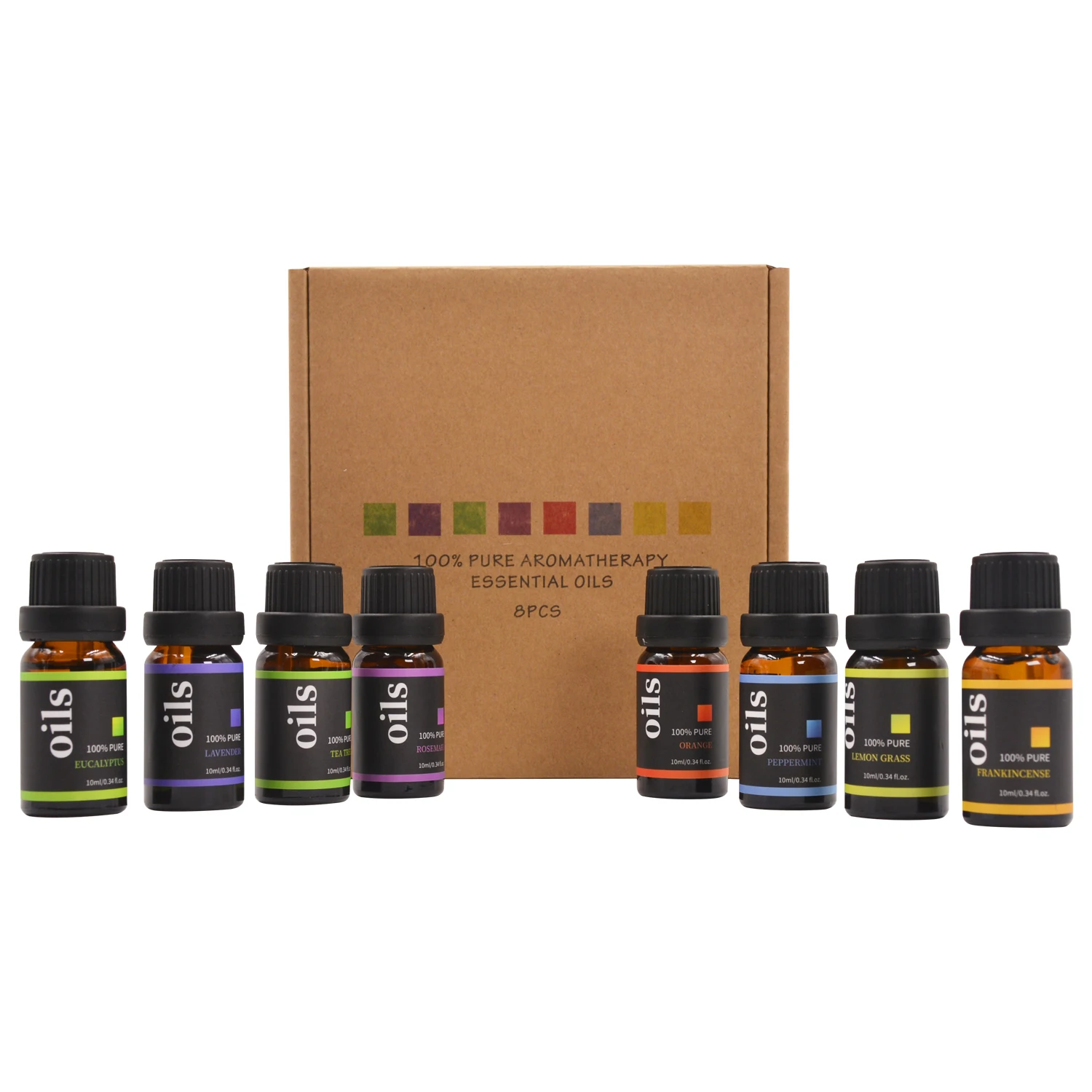 Wholesale Essential Oils Top 8 Gift Set Pure Essential Oils for Diffuser, Humidifier, Massage, Aromatherapy, Skin & Hair