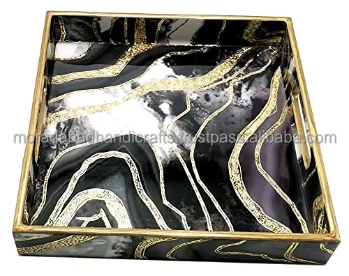 Деревянный квадратный сервировочный поднос с золотым тиснением для дома и обеденного стола | Многофункциональный поднос | Водостойкий и термостойкий