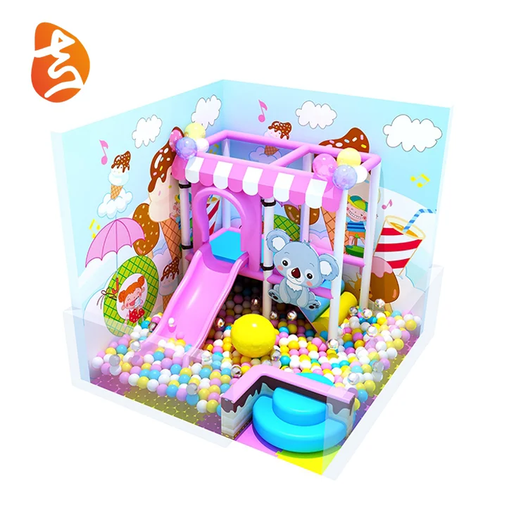 From this view, we can acquire the theme of this product is about candy. We can see some beautiful decorations about candy like lollipop, cream decorations and so on. Also we can have a look of 3-lane slide in the entrance which is quite a big slide and definitely would bring a lot fun to children. And inside that appears a fun ball battle area which is one of our famous producter. So i think it is the best selection to chose our product.