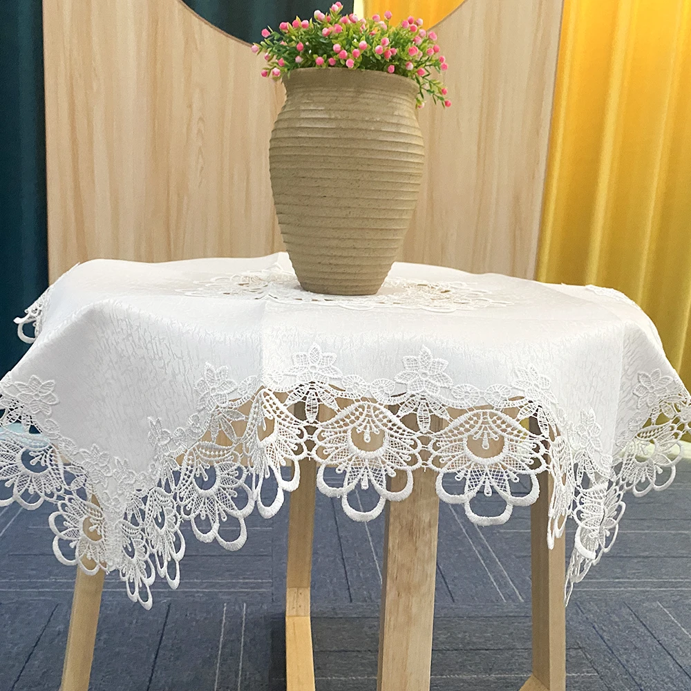 polyester tablecloth with cutwork,36x36",54x72",72x108".16x72",16x54",16x36",12x18"
