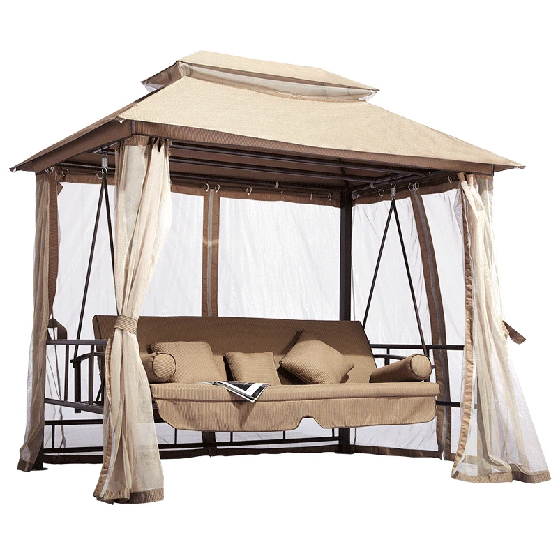 Открытый патио 3 места из водонепроницаемого материала для отдыха в саду беседка качающаяся кроватка
