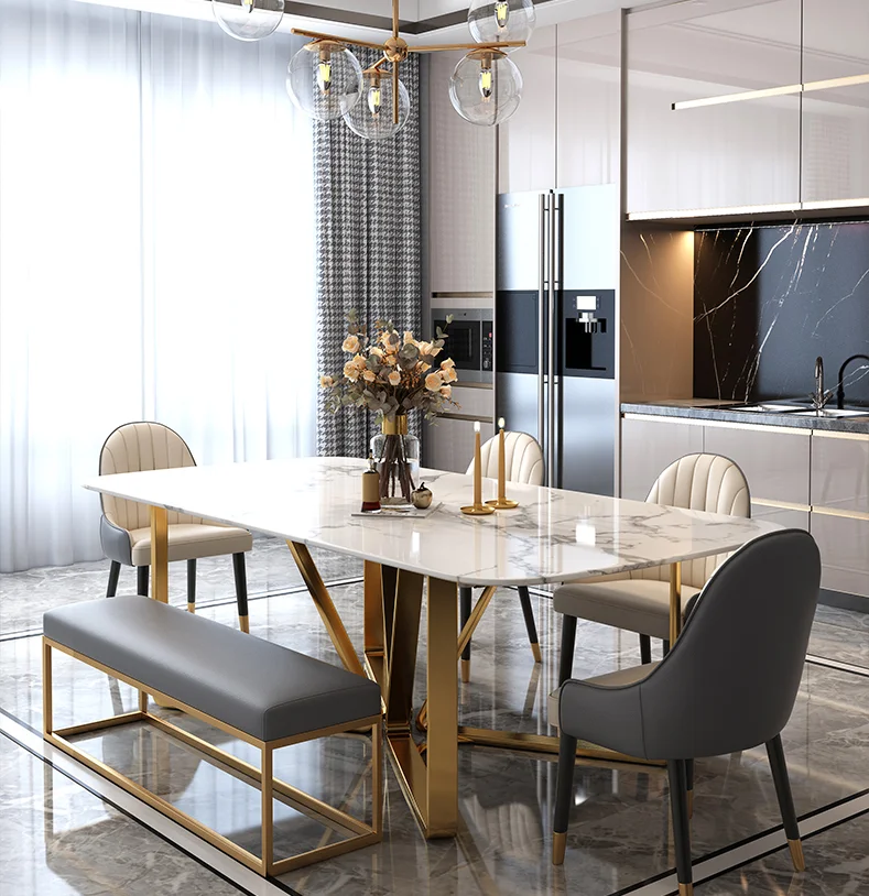2020 мраморный обеденный стол, обеденный стол с мраморной столешницей, простые золотые ножки, обеденный стол, набор на 6 мест