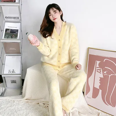 Оптовая продажа кардиган Пижама для женщин зимний отдыха утепленная домашняя одежда пушистый вязаный свитер