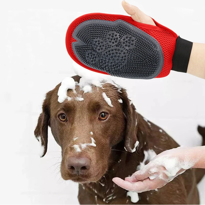 Double Sides Use Pet Dog Cat Animal Puppy Poodle Bathing Glove With TPR Massager And Cotton Hair Remover