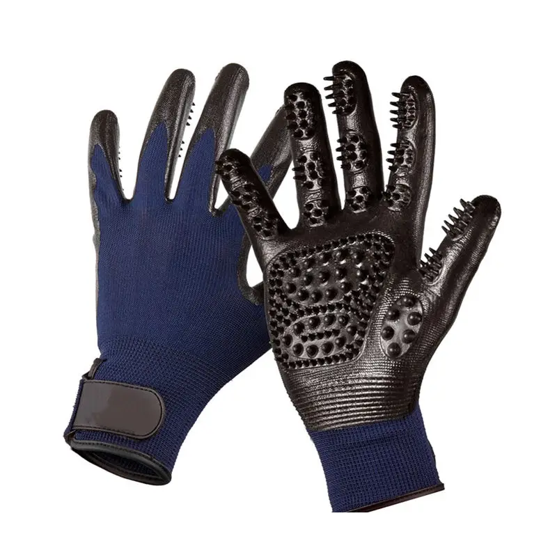 This pet grooming glove is made of cotton cloth with soft TPR teeth comb.