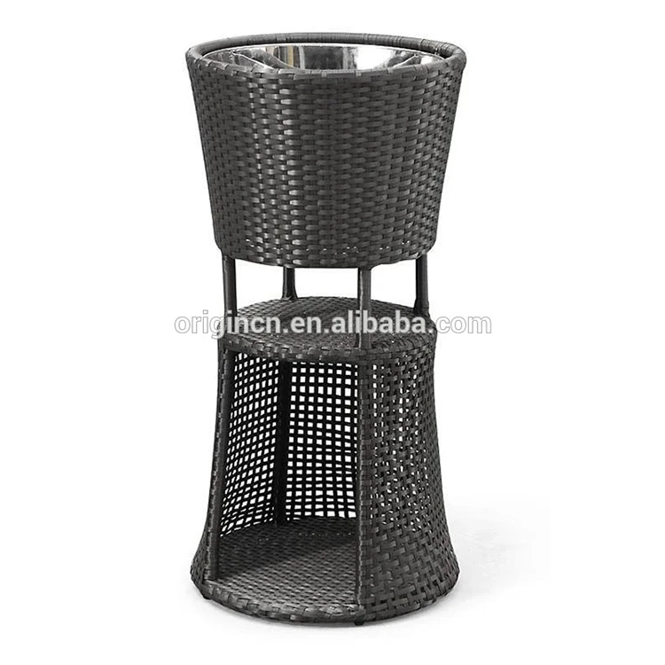 Недорогая уличная мебель из ротанга для сада, патио, вечеринки, с охлаждением и хранением, круглый стол с акцентом