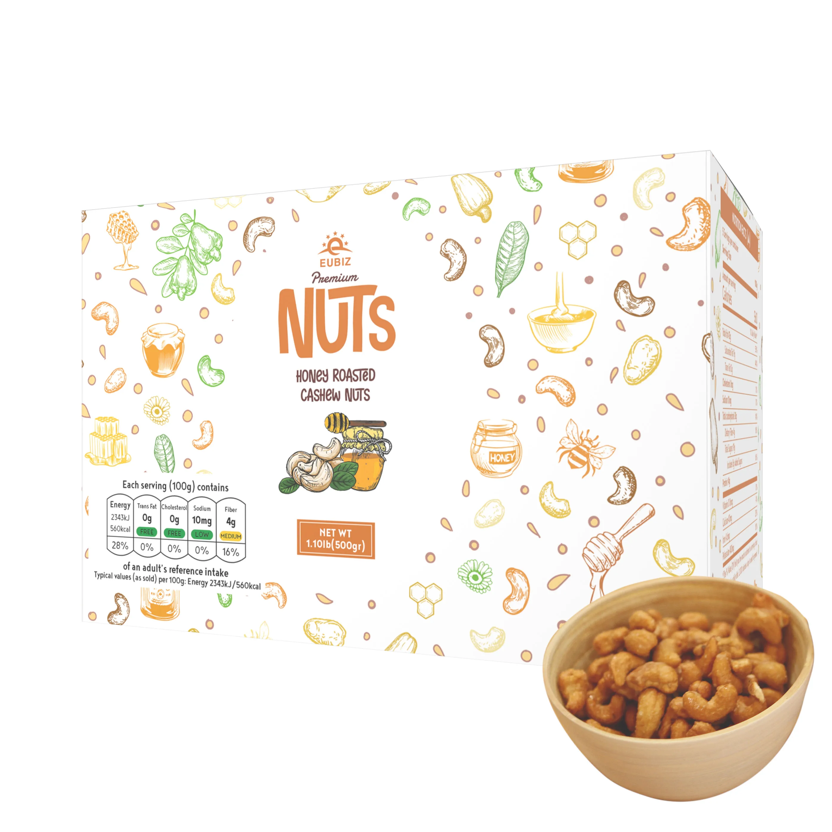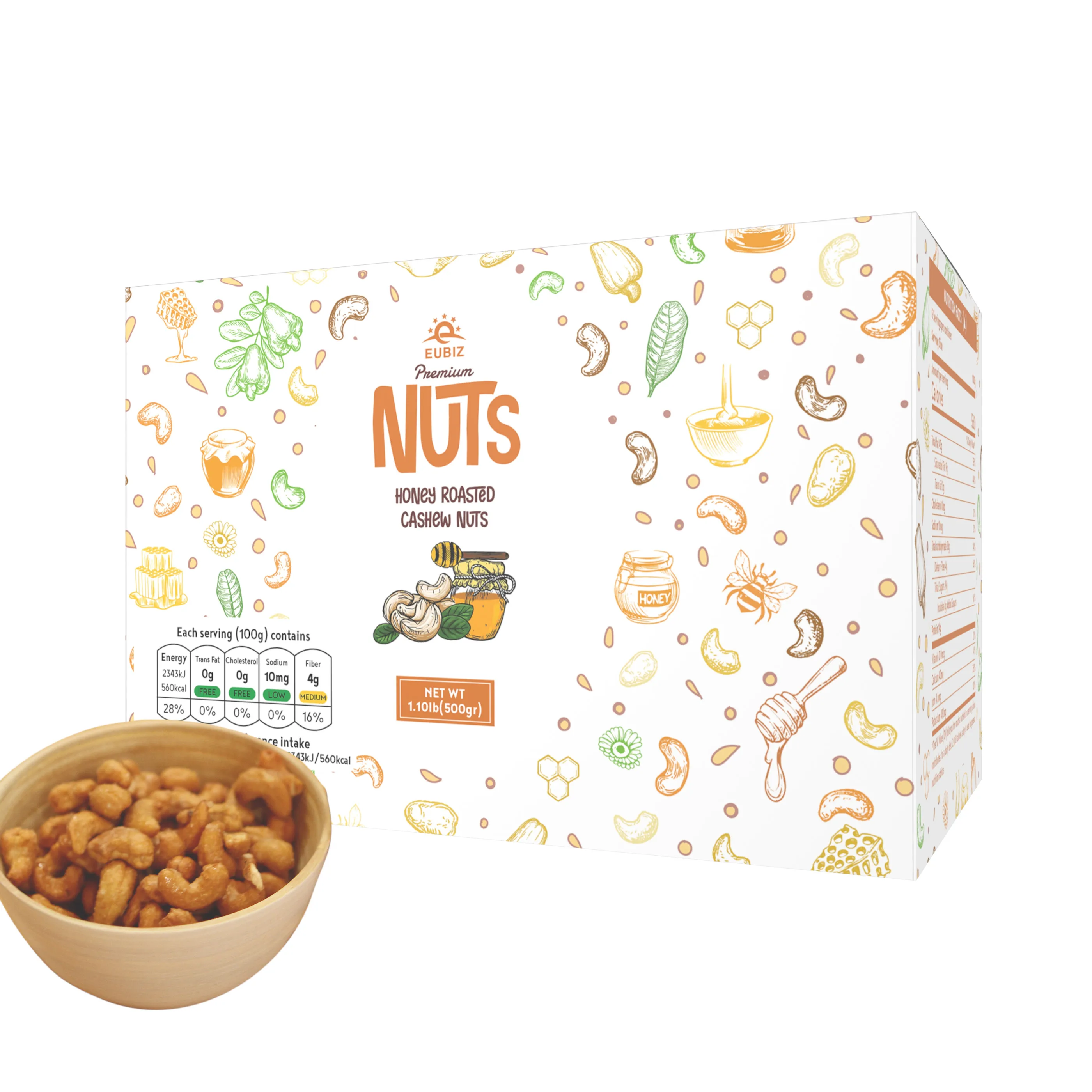 Оптовая продажа, EUBIZ, аромат кешью и орехов, мед, высококачественные органические кешью орехи, коробка (бумага) 500 г (7,0 унции), Вьетнам