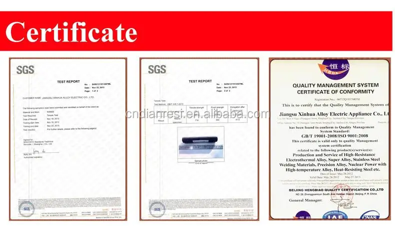 Jiangsu Xinhua Alloy Electric Co., Ltd. is an ISO 9001:2008 certified manufacturer and