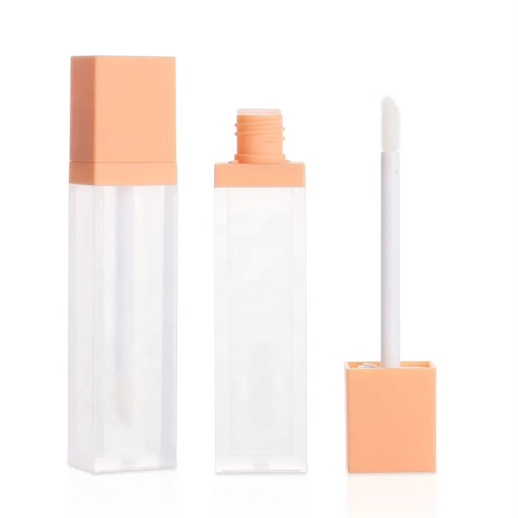 В наличии, прямоугольная трубка для блеска для губ, 6 мл, мягкая на ощупь, оранжевая, контейнер с пробкой для палочки