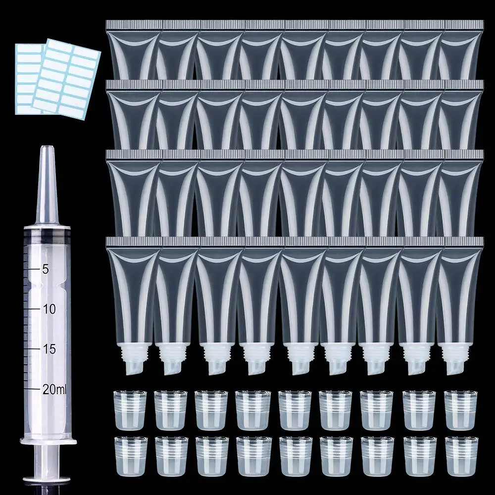 Пластиковый мягкий прозрачный белый шприц 8 мл с фирменным логотипом, цилиндр, прозрачная пустая палочка, блеск для губ, сжимаемые трубки