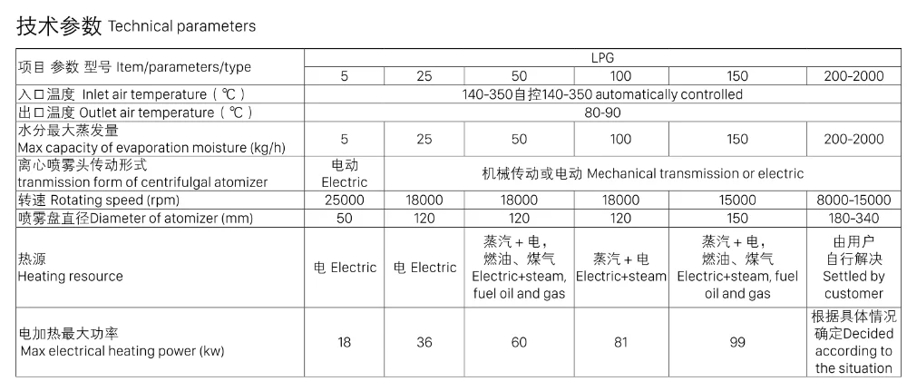1. Высокоскоростная сушка. После того, как жидкость сырье оббрызгивания, ее площадь поверхности будет увеличена в значительной степени. С более высокой эффективностью сушки 95%-98% воды можно испарить за несколько секунд. Время сушки очень короткие, она подходит для Теплочувствительный сырье