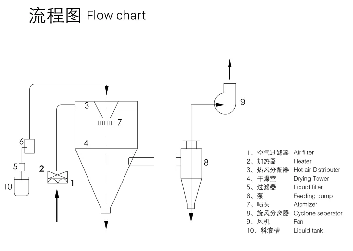 ◆Hot воздух поступает в барабан в спиральной формы под удобный емкостный Мини-стилус, служащий также в распределитель воздуха после того, как он был керамическиепосле. Проходя через высокоскоростной вращающийся распылитель на верхней части башни, жидкость сырье будут распыляется в очень хорошие распылители бусины. Через очень короткое время связаться с горячим воздухом, жидкость для электронных сигарет высушенные в final solid порошковых продуктов. Конечные продукты будут разряжаться непрерывно с дна сушильной башни и из циклонного сепаратора. Отработанный задний воздух будет выгружен из вытяжного вентилятора.