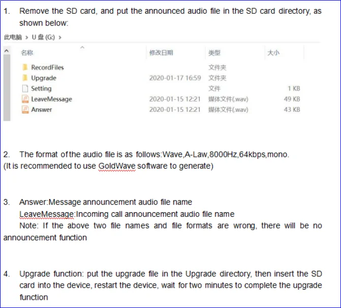 4. When the number of rings reaches the message setting condition (the recording box starts the message function), the recording box enters the message mode, and after the announcement of the message is played, a voice message can be made. If the recording box is not enabled with the message function or the message setting conditions are not met, the recording box will continue to ring the extension. When the number of rings reaches 9 times, the user does not answer, and the recording box returns to the standby state.