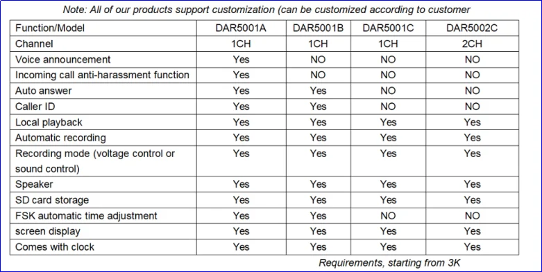 A: We have our own factory and engineer team. The service including offering the technology and support of Telephone voice recorder, PCBs and so on oversea.