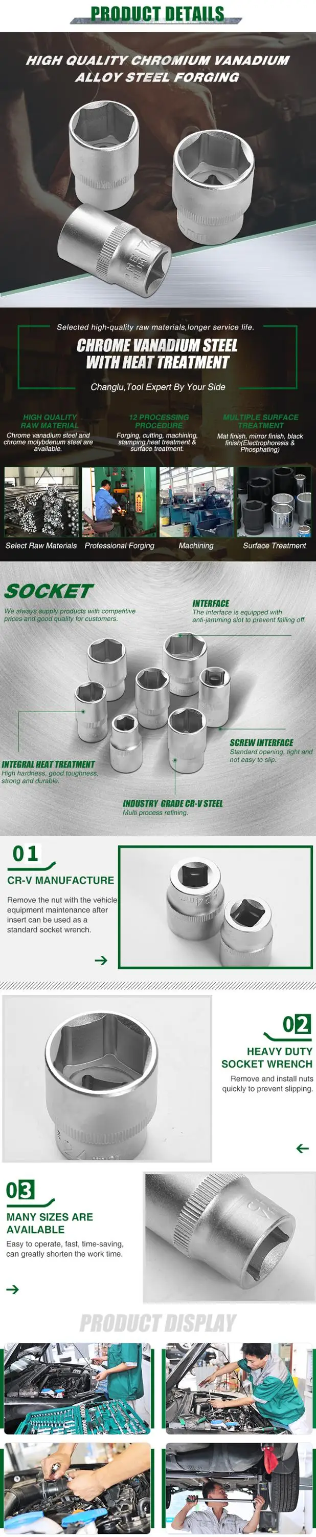 1.All of sockets and accessories are made from 45# carbon or Cr-V steel
