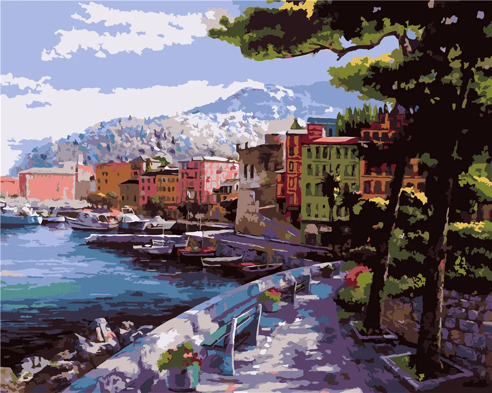 Paintido оптовая продажа Заказная рамка Европейский Средиземноморский Морской пейзаж diy живопись по номерам для взрослых