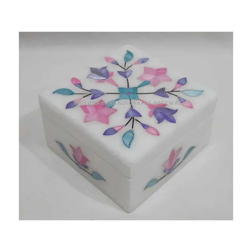 Новейшая производственная Квадратная Мраморная Раковина с морским жемчугом инкрустация Свадебная подарочная коробка стильная индийская для ювелирных изделий из камня в стиле любви
