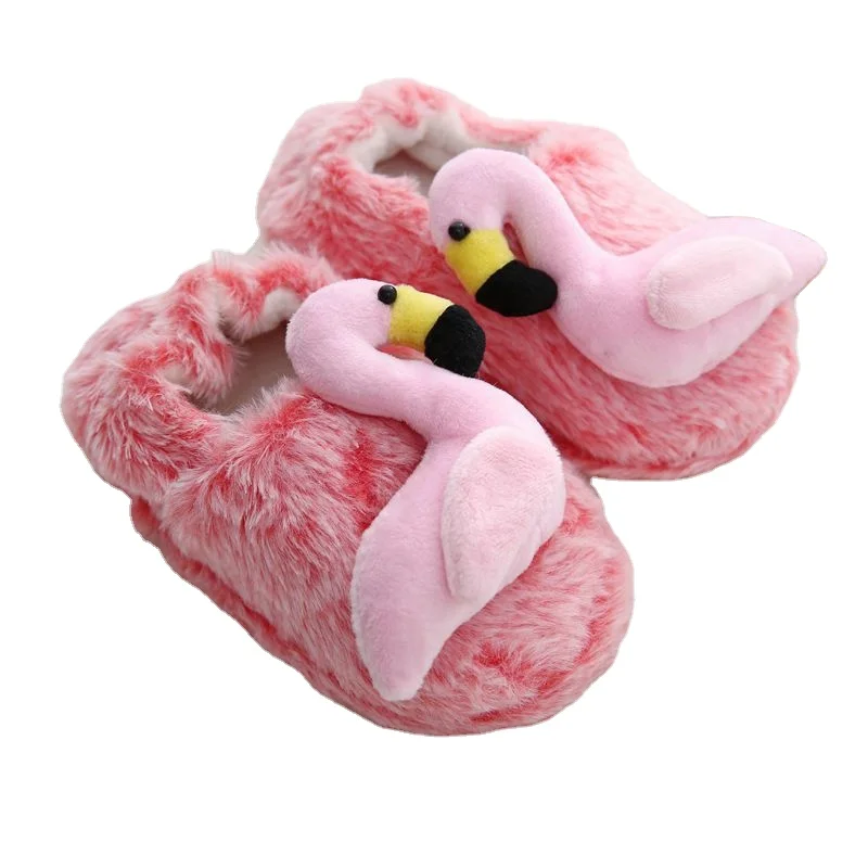 CHIQUE Осень-Зима теплые хлопковые тапочки для детей Домашние Мультяшные с мехом фламинго