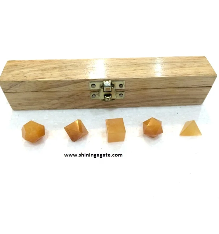 Желтый авантюрин, 5 шт., набор геометрических камней, лечебный набор с деревянной коробкой