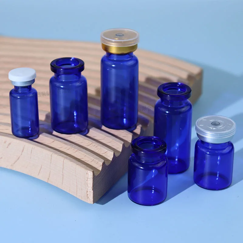 Синяя стеклянная бутылочка для флакона 3 мл 5 7 10 горячего тиснения с колпачком герметизирующий маленькие флаконы лекарств