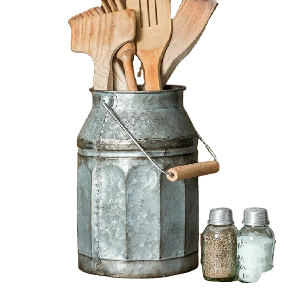 Цветочное ведро ручной работы из оцинкованного металла с простым дизайном идеально подходит для домашнего декора и небольших цветочных композиций