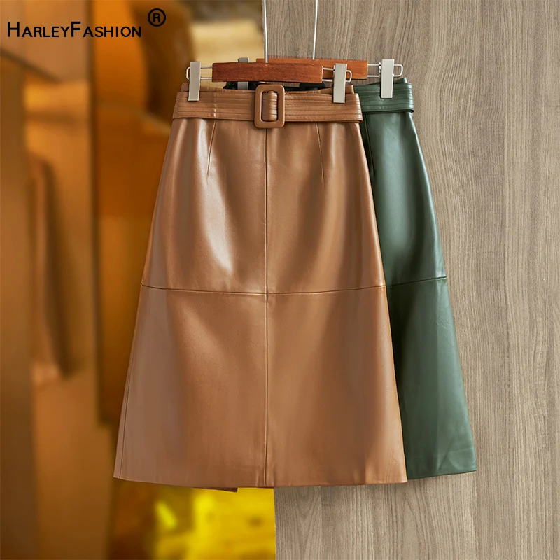 Женская юбка с поясом Повседневная трапециевидная цвета хаки из искусственной кожи зеленого в Корейском стиле Осень-зима 2 054,32 ₽ - 2 739,09 ₽