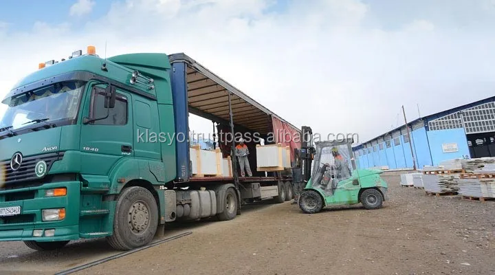 After the blocks are prepared they are lifted and loaded using heavy lifting equipment, mobile and stable cranes and loaded onto the trucks.